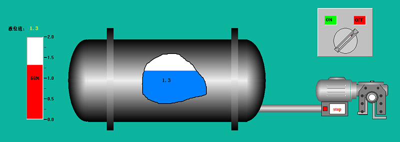 軟件樣圖中所示,用戶不僅可以通過軟件界面直觀的讀取儲罐的液位數據,還可以通過點擊右上角的開關直接對現場的電機供電開關進行控制。