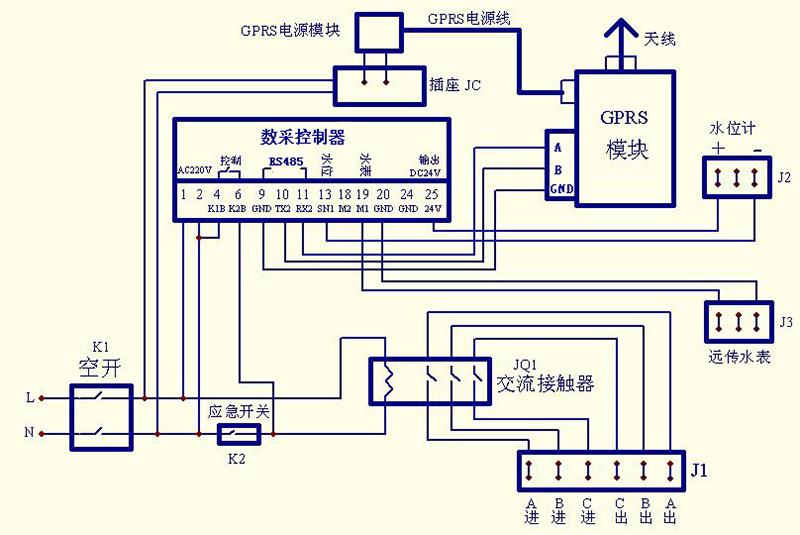 3、遠傳控制系統原理示意圖及接線圖: